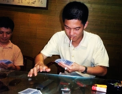 左等右等,终于来齐了,开干!这把牌看来Bee哥丰胸手气都不错,尤其是Bee同学,王力宏的歌声“大王都是我,小~~王都是你”荡气回肠